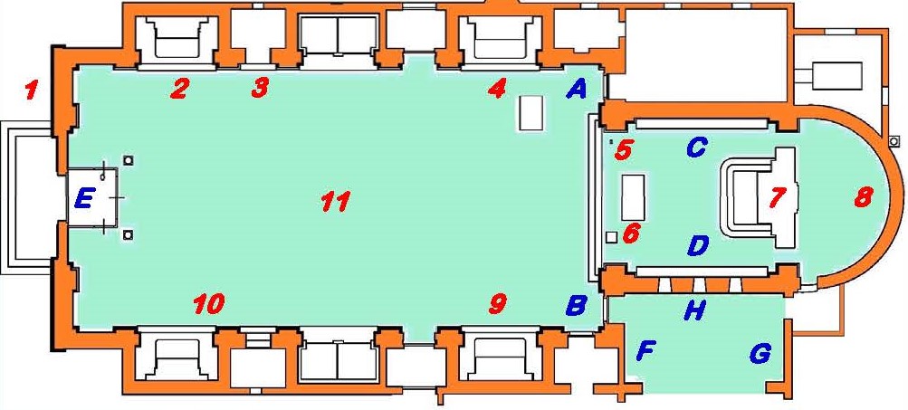 Michail Ivanov è un pittore rumeno, nato a Bucarest nel 1958 e approdato in Italia nel 1994. Dopo gli studi artistici realizzati in patria nell’Università di Arte Sacra del Patronato Ortodosso Romeno ed essersi affinato nella tecnica pittorica della tradizione orientale (icone), ha realizzato alcuni lavori nei dintorni della sua città natale. Si fermò per un periodo a Villafranca dando un contributo significativo nell’abbellimento artistico delle strutture di culto della nostra parrocchia, in Santuario prima, e nella chiesa parrocchiale poi. La Cappella della Sacra Famiglia, è completamente affrescata dall’artista romeno con l’inconfondibile stile orientale: gli affreschi iniziati nel 2002 furono benedetti da Mons. Oscar Rizzato il 29 settembre 2003. Nella parete lato nord (F) si ammirano due opere, l’ “Annunciazione di Maria” e l’ “Annunciazione di Giuseppe”; nella parete sud (G) la “Pentecoste” e nella parete del presbiterio (H) la “Crocifissione”, l’ “Ultima Cena”, l’ “Ascensione” e la “Sacra Famiglia”.
